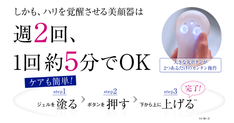 「美顔器はめんどくさいなと思ってましたが使ってみたらすごく簡単!お肌がプルンと跳ね返ってきます」