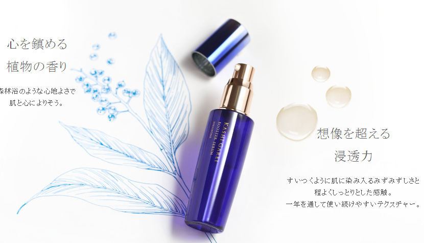 大人敏感肌のためのエンジングケア商品カシガレイの注目は、化粧水前の浸透美容液【カシガレイブースターセラム】です。